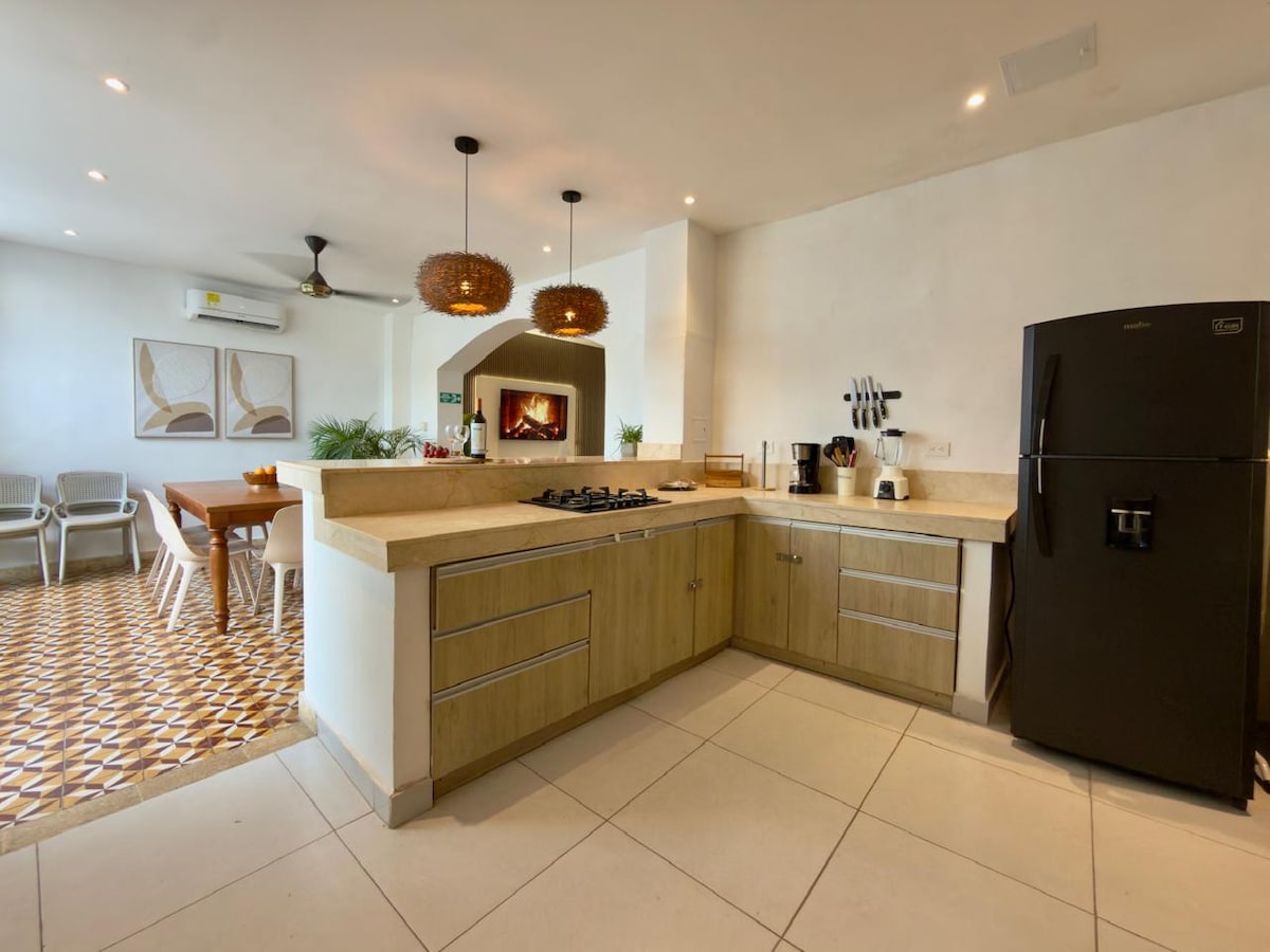 Suite loft de 1 dormitorio en el corazón de Cartagena inspirada en algunos de los mejores hoteles 5 estrellas del mundo. Situado dentro de las murallas del casco antiguo, a poca distancia a pie de tiendas, entretenimiento, restaurantes, discotecas y bares. Disfruta de tu estancia en esta ciudad Patrimonio de la Unesco llena de historia y emoción. Cocina totalmente equipada con lavadora/secadora, cama tamaño queen, sofá cama, TV, Netflix y wifi de 400 Mb. Nuestro moderno apartamento con ambiente playero es perfecto para que una pareja disfrute y se relaje. Instagram @pombocartagena