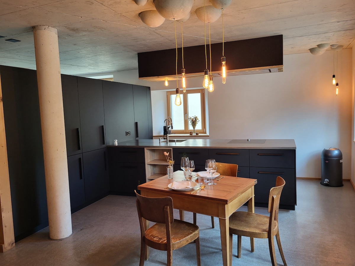 Appartement spacieux de 165 m2 (en triplex avec mezzanine), rénové dans une vieille ferme Neuchâteloise. Jardin avec terrasse et coin feu à disposition. Cuisine agencée (lave-vaisselle, plaque induction, four à vapeur et ancien four à pain utilisable pour les pizzas). 2 salles de bains (1 douche/baignoire/WC et 1 douche/WC). 3 chambres à coucher. Séjour ouvert sur la cuisine avec poêle à bois. Wifi + réception 4G/5G. Sauna extérieur à disposition (prix en supplément).