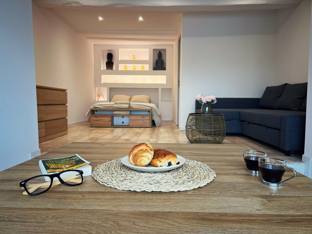 Para 2 adultos y 1 niño En una zona residencial, tranquila y verde, le ofrezco mi estudio de 30 m2 y su balcón. Tiene aire acondicionado y se encuentra en la planta baja de la villa. Para su comodidad, la cocina está totalmente equipada. El baño con ducha y el inodoro están separados. Hay muchos espacios de almacenamiento disponibles para usted. TV, wifi (fibra) Llegada autónoma Residencia segura por portal y cámara. Aparcamiento gratuito. Coche recomendado o buenos caminantes