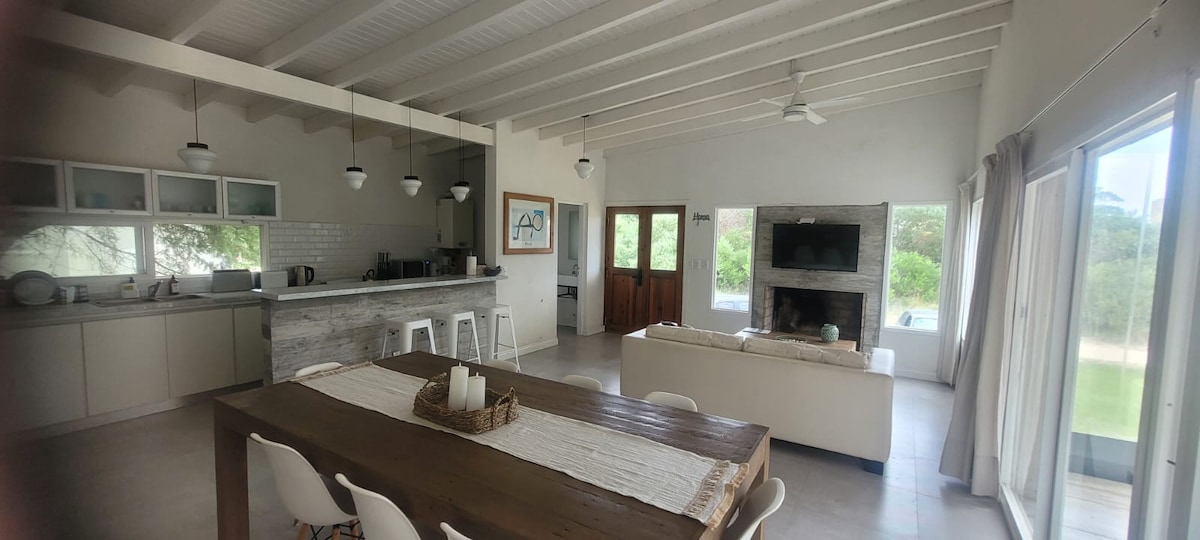 Nuestra casa fue creada y diseñada para uso personal, por lo que la atención al detalle estuvo presente mientras fue construida, y se decoró y equipó de la misma forma. Está rodeada de vegetación, lo que genera la sensación de estar en el medio del campo. Sus espacios abiertos y el vidriado sumado a la orientación de la casa hacen además que la luz sea parte de la casa durante todo el día, incluyendo al jardín, en el que pega el sol desde que amanece hasta anochece.