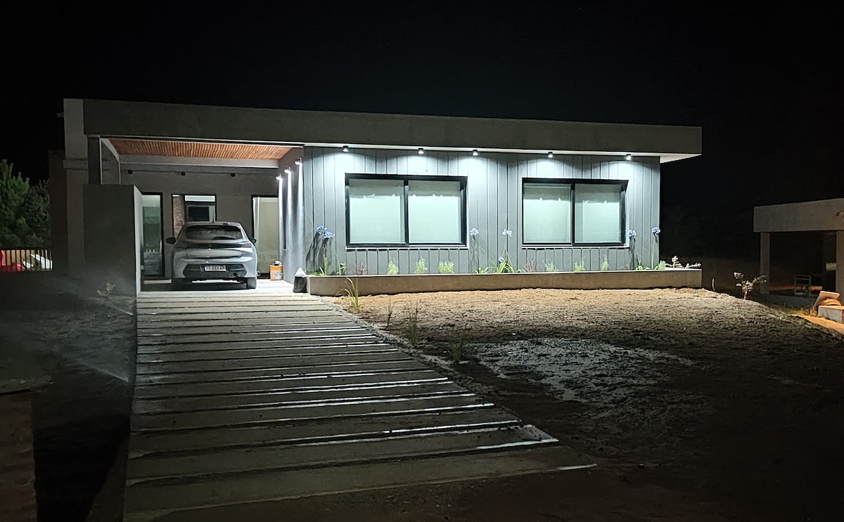 Nuestra casa fue creada y diseñada para uso personal, por lo que la atención al detalle estuvo presente mientras fue construida, y se decoró y equipó de la misma forma. Está rodeada de vegetación, lo que genera la sensación de estar en el medio del campo. Sus espacios abiertos y el vidriado sumado a la orientación de la casa hacen además que la luz sea parte de la casa durante todo el día, incluyendo al jardín, en el que pega el sol desde que amanece hasta anochece.