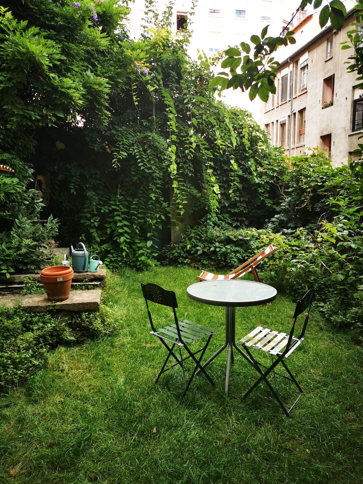 La campaña en la ciudad. A solo 10 minutos a pie del Ayuntamiento, en las alturas del casco antiguo de Lyon, nuestra casa es una joya de vegetación en la ciudad. Un entorno raro y agradable. El apartamento tiene una sala de estar / cocina, un dormitorio y un baño con ducha. Ofrece una hermosa vista de la colina de Croix-Rousse. 1 plaza de aparcamiento disponible de forma gratuita. Pero cuidado, el acceso más directo a la ciudad solo se realiza por las escaleras a St Paul (ver foto).