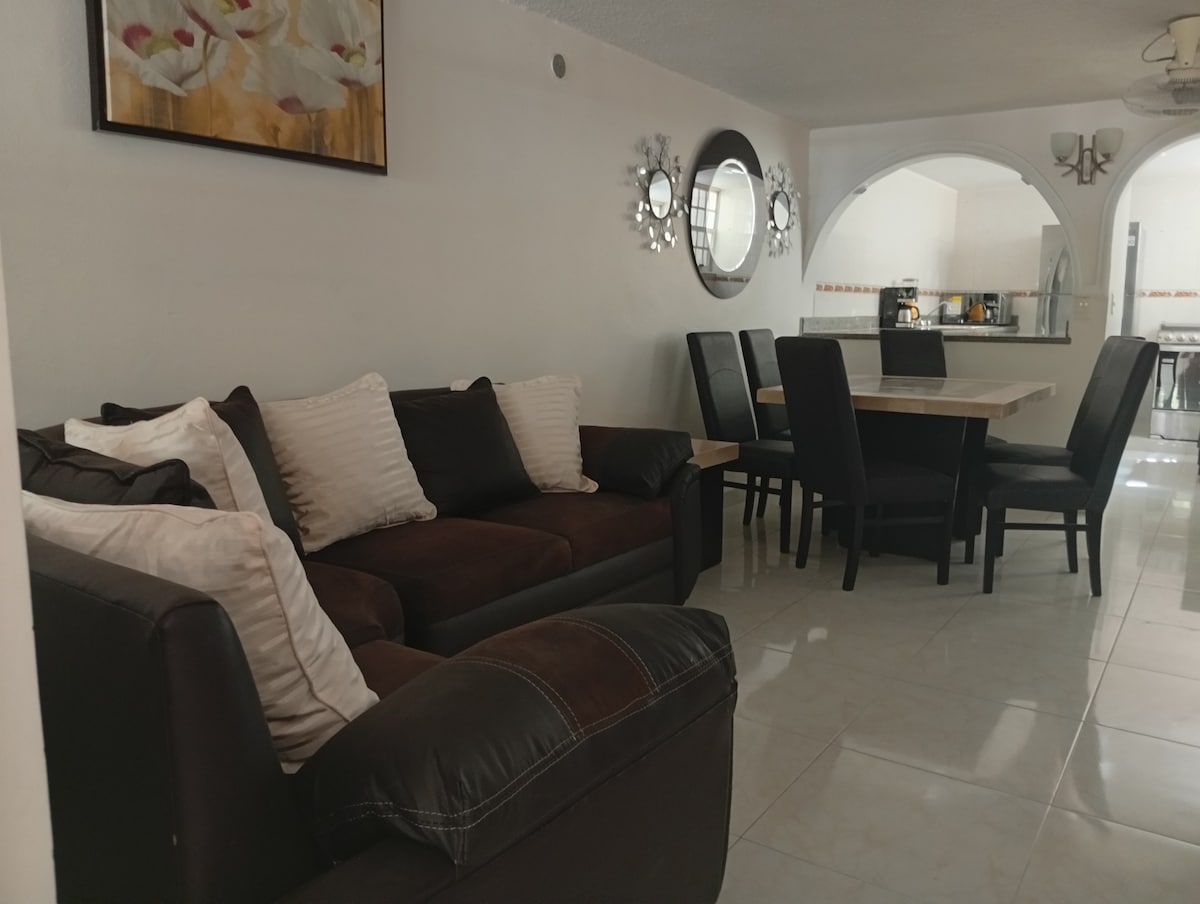 Relájate con toda la familia en este alojamiento donde la tranquilidad se respira. A 10 minutos de las principales playas de la ciudad y a 5 minutos del centro y plazas comerciales. Ubicado en un conjunto habitacional, con calles adoquinadas, un poco angostas pero de fácil circulación. A 5 minutos de la agencia municipal y del boulevard principal donde encontrarás diversas oficinas y hospitales (IMSS, H. NAVAL, SSA, CFE, TELMEX, FONATUR, Etc)