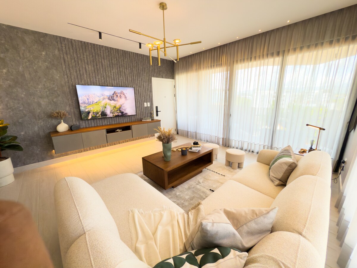 De una habitación, Moderno apartamento a estrenar con un diseño de interior minimalista y cómodo. Situado en el corazón de la ciudad de Santiago De Los Caballeros. Cerca del centro de la ciudad: Monumento, Agora Mall, restaurantes y Hospital/farmacia. Todo lo que necesite estará a menos de 5 minutos. Lugar Perfecto Para una pareja o viajero solo. A 15 minutos del Aeropuerto Internacional del Cibao.