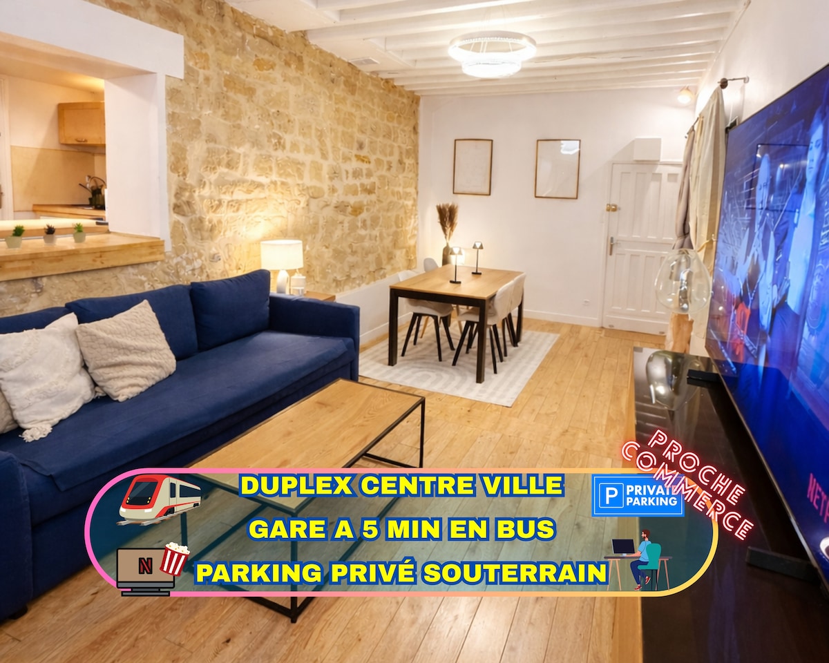 Duplex lumineux, Parking,10min Paris, Centre ville