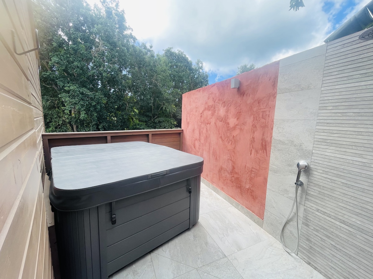 La Kabane Secreta es una verdadera burbuja de amor diseñada por completo para parejas. Aquí, la naturaleza tropical y la comodidad excepcional de un lodge bohemio chic se encuentran para recargar energías en un momento fuera del tiempo y crear una experiencia única inolvidable. En un entorno de tranquilidad y autenticidad, la Kabana Secreta se articula alrededor de la piscina y el jacuzzi, en un ambiente interior/exterior que invita a la relajación y la relajación.