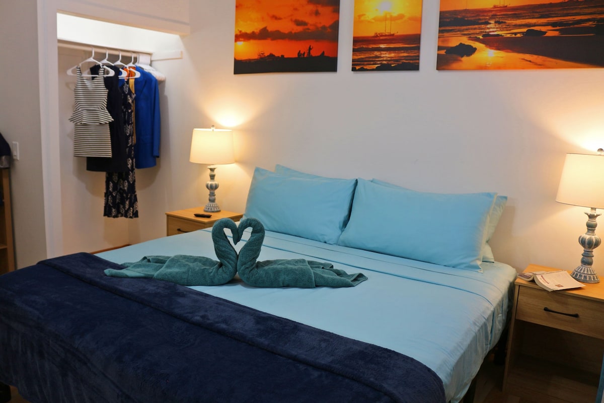 This is a perfect place to spend for an overnight stay or a short trip. The reason for this is because there is no kitchen, only a small fridge and microwave. The breeze way in between the guest suite and the main house is shared with owners but you will have total privacy in the guest suite which is separate from the main house. Our super friendly pups on the property love to greet everyone! NO Cleaning Fee!