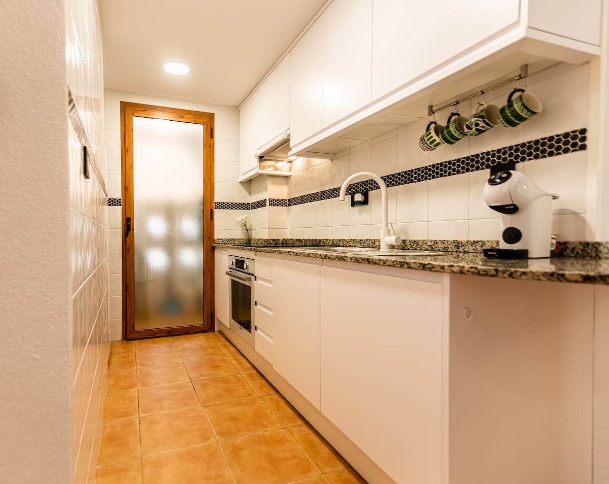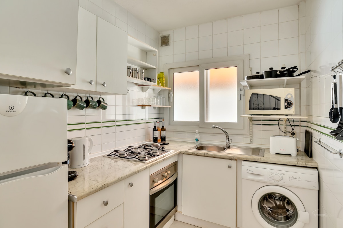 Apartamento VIP recién reformado y amueblado a 700m del mar con un dormitorio y sofá-cama. Todo lo necesario para una pareja. Con smartTv en comedor y habitación de 55”. 1 baño totalmente equipado y con todas las comodidades (secador de mano, productos de aseo)... Wifi por todo el espacio. Salón comedor con zona de descanso muy luminoso , con preciosas vistas . Cocina completamente equipada, servicio de café y té, lavadora-secadora, tostadora, vitrocerámica, horno microondas, nevera.