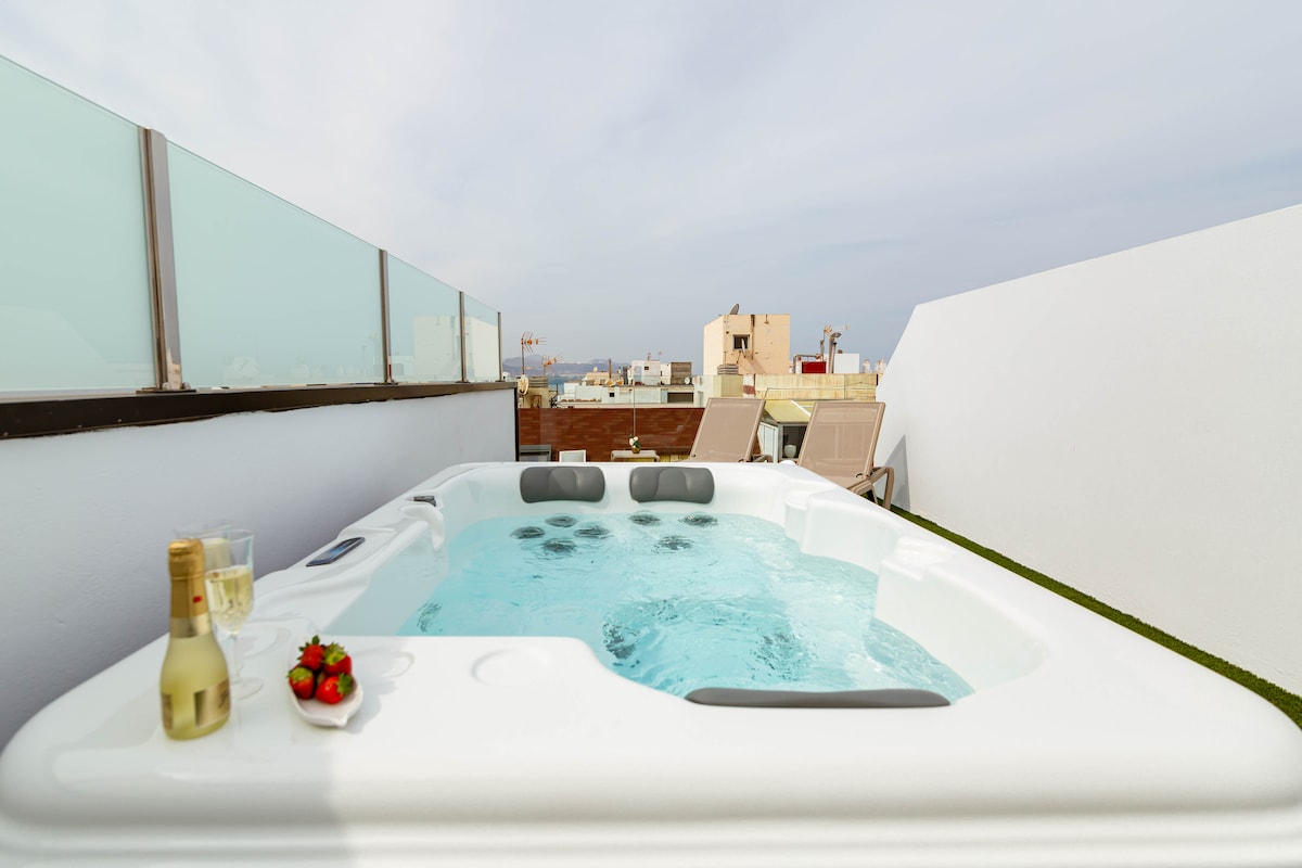 Alojamiento situado en primera línea de playa, con vistas al mar. Lugar ideal para relajarte y pasar unos días de descanso inolvidables. El alojamiento consta de vivienda completa. En la planta superior dispones de una terraza EXCLUSIVA provista de solárium, zona de relax con ambiente musical y un espectacular jacuzzi. Con todos los beneficios que proporciona un spa favoreciendo un bienestar físico y psíquico. El jacuzzi dispone de radio, bluetooth, aromaterapia (opcional) y cromaterapia.