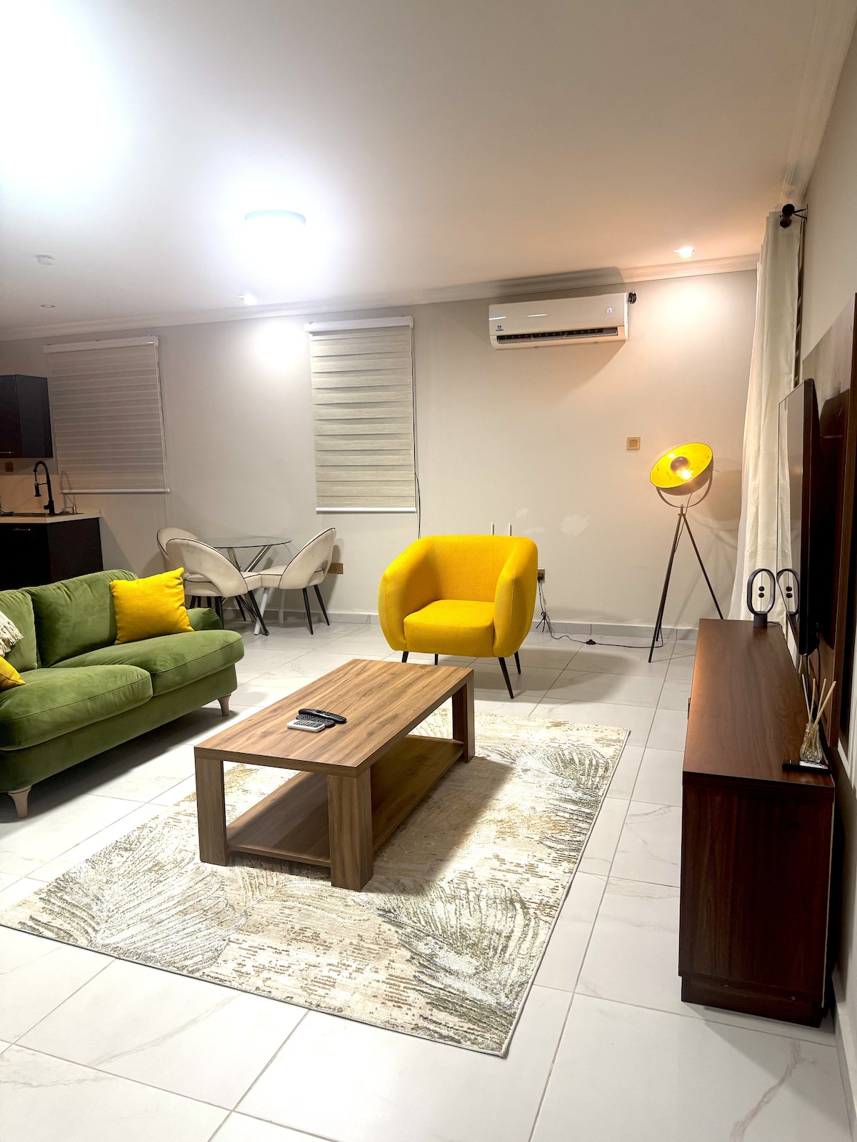 Lujoso apartamento de un dormitorio con baño, de nueva construcción y espacioso, para alquiler a corto y largo plazo. La casa se encuentra en una parte privilegiada del norte de Legon. A 9,5 km del aeropuerto internacional de Kotoka y a 1,5 km de la Universidad de Ghana, Atlantic Mall, Palace Mall, jardín botánico de Legon, el apartamento está cerca de todo. La habitación con baño incluye una cama tamaño queen, colchón ortopédico y almohadas para dormir bien. El apartamento inteligente cuenta con cámaras de CCTV, ideales para una vida cómoda y segura.