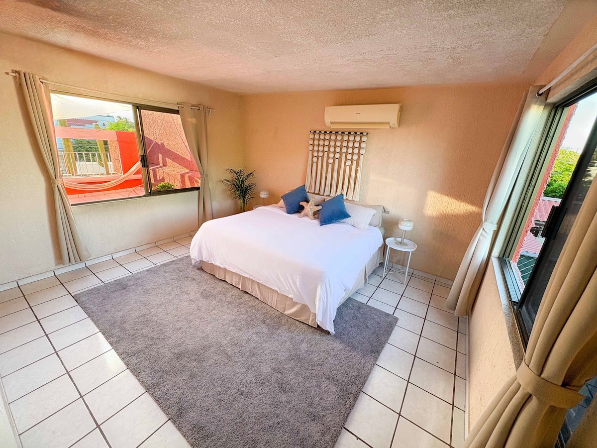 A solo unos pasos de la playa. Nuestra unidad es una unidad final ubicada en la planta baja con dos patios frente a la zona de la piscina y con vistas a la playa. La única propiedad verdaderamente frente a la playa en La Paz. Este apartamento está totalmente equipado con todos los servicios para que tu estancia sea cómoda y relajante. La unidad está decorada con un toque de encanto mexicano para que te sientas como en casa. Te encantarán las puestas de sol 🌅 y los amaneceres.