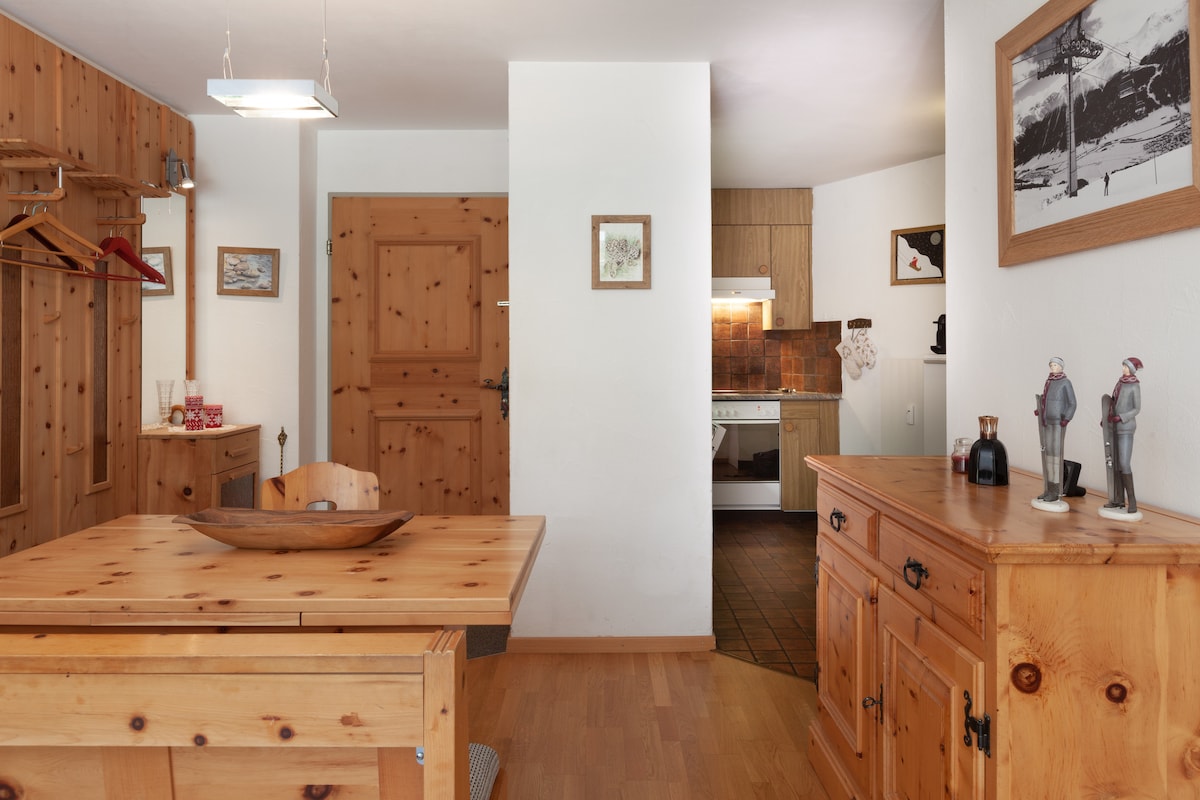 El departamento se encuentra en una ubicación céntrica cerca de un pequeño supermercado, una panadería, una carnicería, una tienda de equipos deportivos, etc. El remonte y la estación de tren también están a poca distancia a pie. El departamento está en una antigua casa tradicional de estilo Engadin en un vecindario tranquilo. Se ubica directamente bajo el techo con ventanas estilo tragaluz. El departamento tiene capacidad para 4 personas. Hay un dormitorio con una cama doble y uno con dos camas individuales. La cocina moderna es totalmente equipada para tus necesidades de cocina.