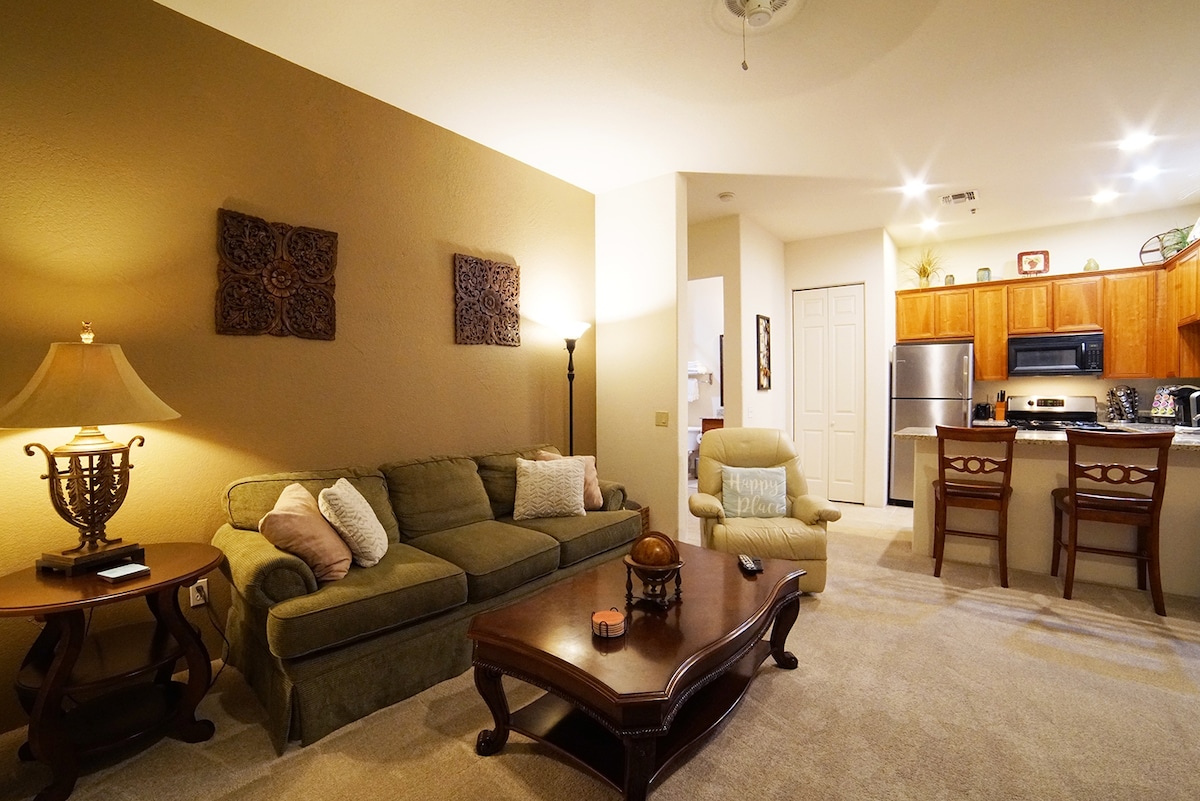 Bienvenido a este apartamento privado recién reformado. La sala de estar tiene muchos asientos acogedores, una chimenea de gas y televisores inteligentes. Disfruta de una taza de café o cocina tu comida favorita en la cocina completa. El dormitorio cuenta con una cama tamaño California King ricamente decorada para tu comodidad. Disfruta del aire libre en tu patio privado, refréscate en una de las varias piscinas del complejo o contempla las vistas del atardecer desde el jacuzzi. La propiedad se encuentra a poca distancia a pie del casco antiguo.