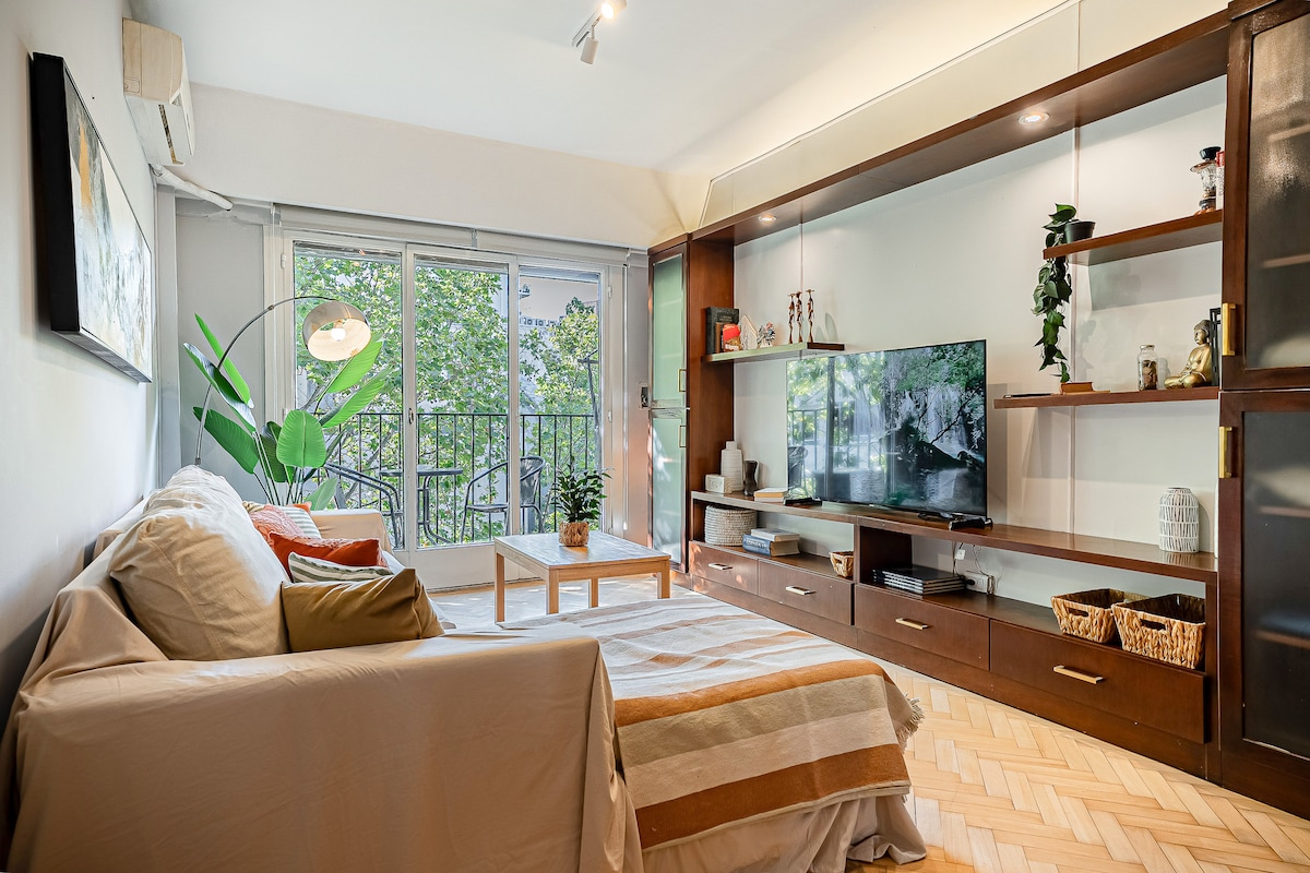 Departamento moderno y luminoso en Palermo Chico. Dos habitaciones (cama queen y cucheta), 1 baño completo + toilette, cocina equipada, balcón y ropa de cama incluida. Aire acondicionado, Wi-Fi, TV con Netflix, lavarropas. Seguridad 24 hs. Check-in 13hs, check-out antes de las 11, pero ambos son flexibles y autónomos. — Modern and bright apartment in Palermo Chico. 2 bedrooms, full kitchen, balcony, Wi-Fi, A/C, Netflix. 24/7 security. Flexible & self check-in 1 pm, check-out before 11 am.