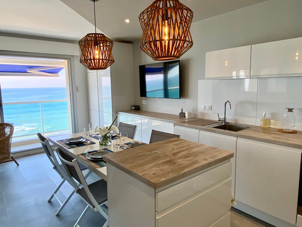 Frente al mar: disfrute de unas vistas excepcionales. Magnífico apartamento T2 (2/4 personas) renovado en 2024 - GRAN CONFORT. La playa y la duna están al lado del apartamento (sin carretera que cruzar). Impresionantes vistas al mar y a la isla de Yeu desde el comedor, la logia e incluso desde la cama de su habitación. Admire las puestas de sol en pareja, en familia o con amigos. Tiene su propio garaje cerrado; ideal para su coche y para guardar bicicletas, remolque y juegos de playa.