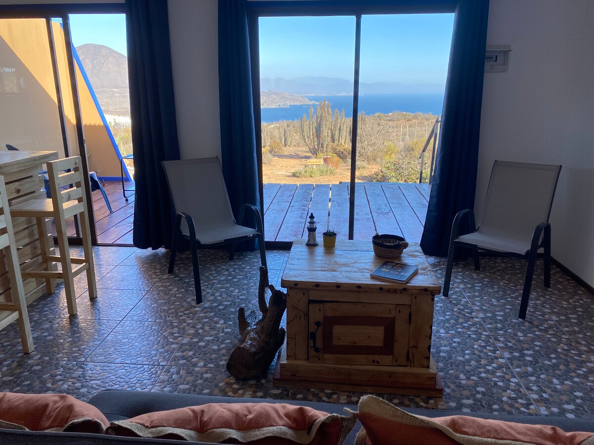 Desconecta de la rutina en este alojamiento único y relajante. Ven a disfrutar del paisaje semidesértico costero de la región de Coquimbo, en un entorno rural y alejado pero a poco tiempo de los principales atractivos turísticos de la zona. Cabaña La Mar te ofrece la unión perfecta entre flora nativa y vistas panorámicas al océano Pacífico. Todo esto en un alojamiento que ha cuidado cada detalle para que tu estadía sea toda una experiencia.