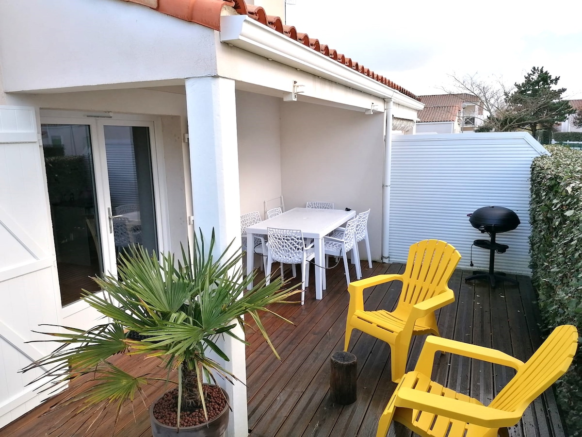 Situada en la Grière, la casa está cerca de las tiendas(panadería, charcutería...)y de las animaciones. ¡La playa está a 5 minutos andando! El alojamiento está compuesto por: - una cocina equipada(refrigerador,placa de cocina, cafetera, hervidor de agua, microondas...) - una sala de estar (sofá cama, mesa de centro, TV) -una habitación(cama 140x190, mesita de noche) - un cuarto de baño( ducha, inodoro, lavabo) - un espacio libre (armario, puerta de abrigo) - 2 terrazas ( cobertizo de jardín, barbacoa , muebles de jardín) - Aparcamiento privado y vallado