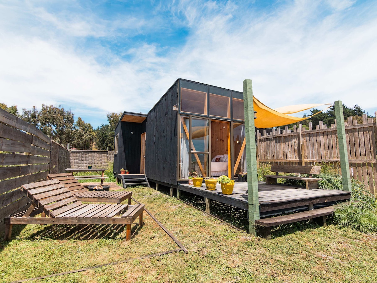 Acogedor refugio de un ambiente (24m2) de diseño único tipo tiny house , inserto en una quebrada nativa con espectacular vista a los valles donde podrás ver una gran variedad de aves . Ideal para escapar de la ciudad y refugiado del viento costero. Amplia terraza con tina exterior caliente y ducha de agua fría . Muy cercano a playas de Matanza y Pupuya. (1cama queen+camita para niños) . Se recomienda 4x4 para días de lluvia - 4,5km de Matanzas - 3.5km de La vega - 24km de Puertecillo
