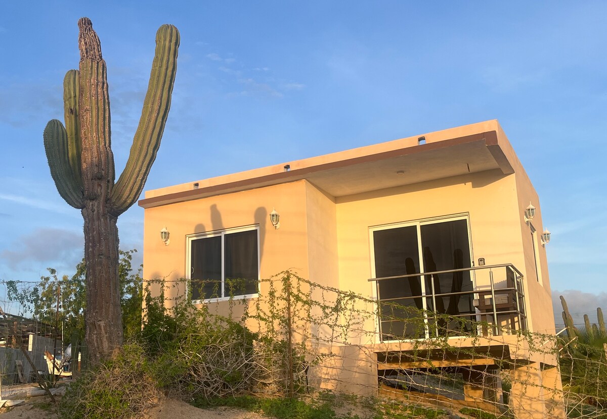 Disfruta de la sencillez de este alojamiento tranquilo y céntrico. Este alojamiento es especial porque fue diseñado pensando en los amantes del mar, el viento y la tranquilidad, toda la propiedad para ti. A solo 5 minutos caminando de la playa y Playa Central, esta casa nueva combina comodidad moderna, conexión confiable con Wi-Fi satelital Starlink, y un ambiente relajado con vistas espectaculares a la bahía y el desierto, bodegas para guardar tu equipo deportivo y kite.