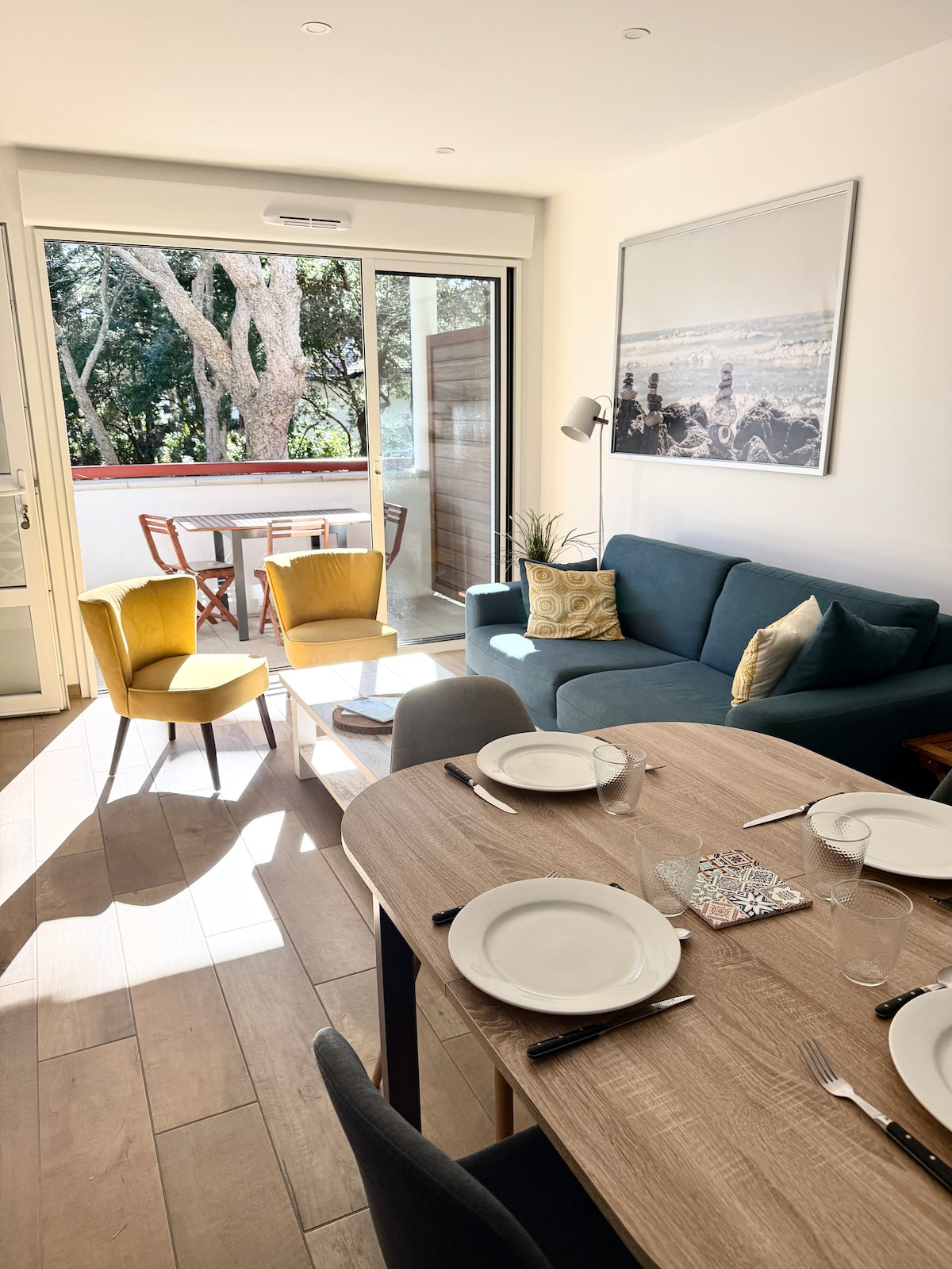 Hermoso apartamento de 4 camas, clasificado 4*, orientado al SUR y situado en el 1º piso de una residencia de lujo con ascensor. Consta de: entrada / armario, cocina equipada, sala de estar con sofá cama, dormitorio con armario, baño / inodoro, terraza grande, TV, wifi, altavoz Bose, 2 ventiladores de techo, ropa de cama incluida. Ubicación excepcional. Todo a pie: playas, puerto, mercado de pescado, tiendas, restaurantes... Estacionamiento gratuito en la calle del 17/09/25 al 30/06/26. philippe.fontaine40