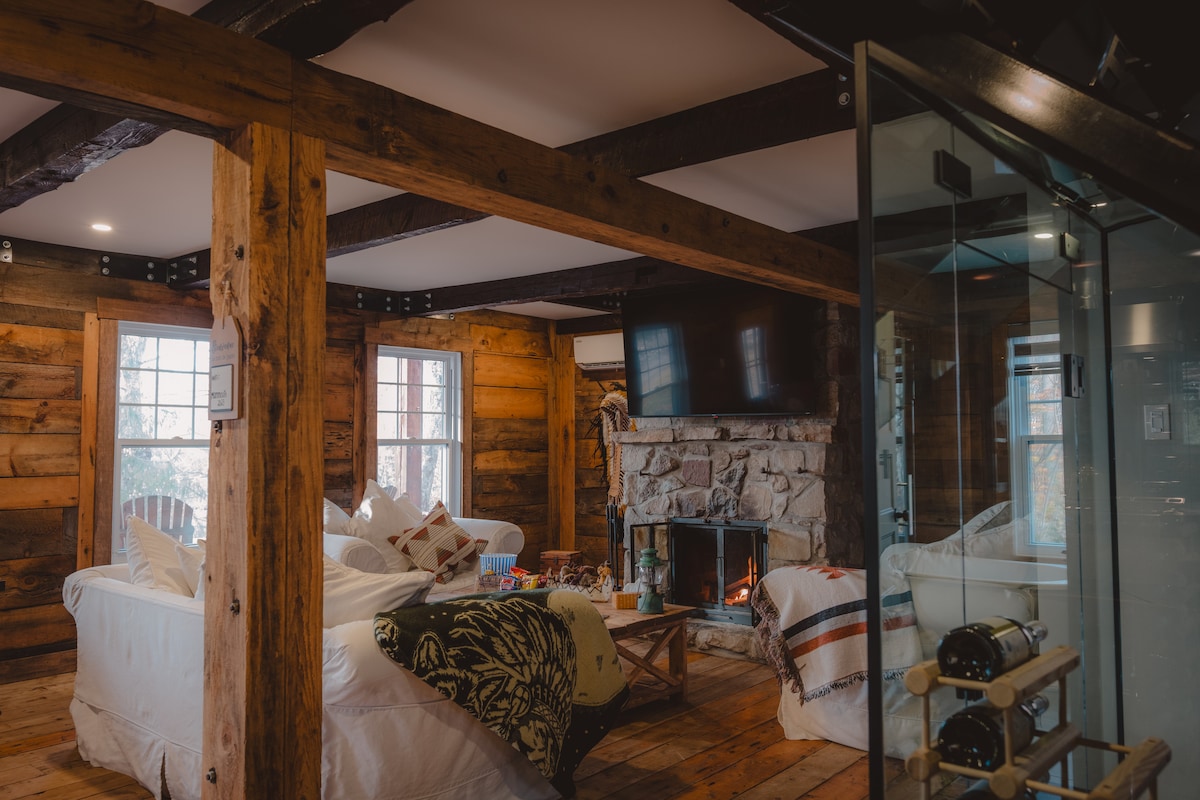 Moderna casa de campo de inspiración autóctona enclavada en la naturaleza, con vistas a la montaña. Disfrute del spa al aire libre abierto todo el año, la chimenea de leña y la barbacoa. Cocina completa con cafetera Keurig (1 café por persona por día. Tres dormitorios (1 King, 2 Queen, uno de ellos en el altillo). En un terreno de 5 acres, este lugar combina la comodidad y el encanto de la madera, perfecto para relajarse. N.º reg.: 309551 exp.: 2026-06-08.