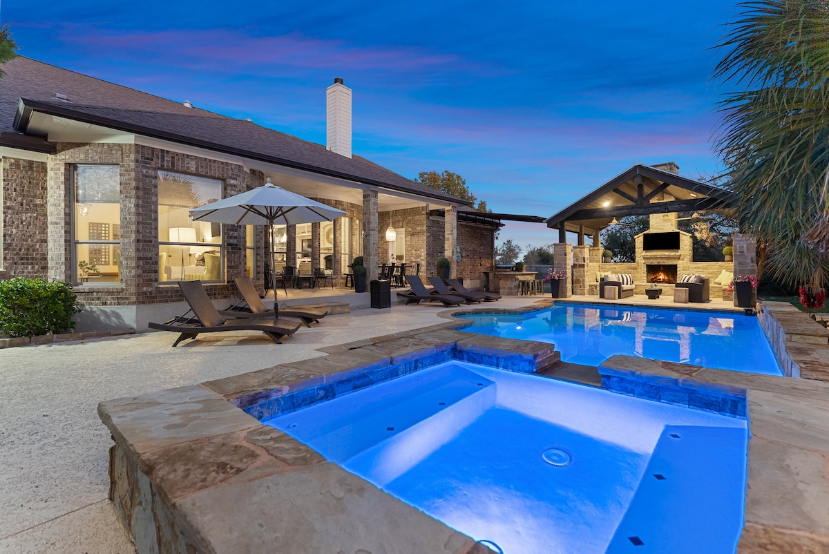 ☀️Send request on early check in, late check out! Your life time memory is created in this new built lake view villa! Sitting by the fireplace enjoying lake, play pingpong w/hill country, soaking in lux tub in 400 sqft bathroom with view, Jacuzzi w/ lake view, BBQ in private club. 🏀 Exclusive clubhouse access with infinitypool, grill, pickleball & basketball courts (access card provided) 🏓 Table tennis with scenic hill view. 💦 Lake-view Jacuzzi + mountain-view patio 🍷 15 mins to winery