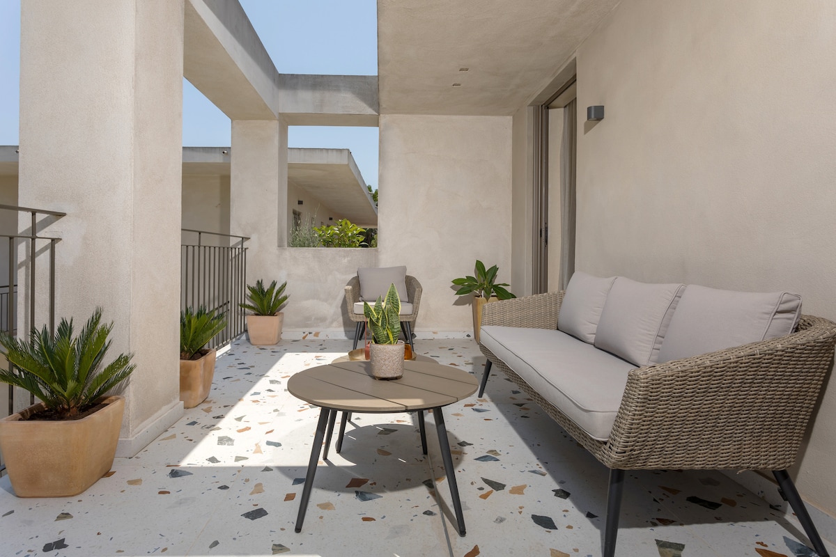 Nuestro apartamento con balcón es la opción ideal para 2 a 3 personas. Su tamaño es de 22 metros cuadrados y cuenta con un dormitorio de planta abierta, con una cama doble y un sofá cama. Se ofrece un balcón amueblado con vistas a la ciudad.