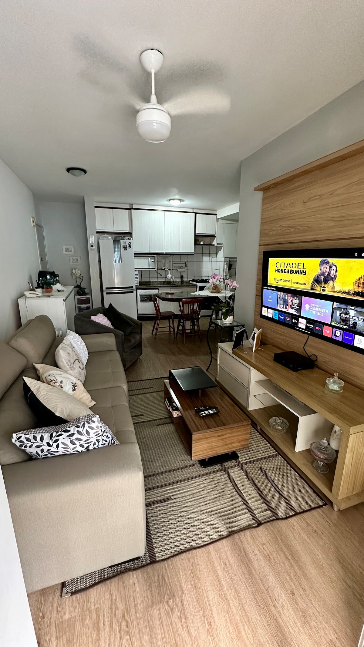 Apartamento novo, condomínio de alto padrão +ou-100 metros do mar, bloco A de frente para a piscina de borda infinita. A sacada do apartamento possui churrasqueira e uma vista incrível da praia dos Ingleses. Móveis sob medida. Dois quartos climatizados, sendo 1 suíte com TV Smart.Dois Banheiros com aquecedor a gás, proporcionando um banho relaxante. Sala com televisão Smart permite acesso a Netflix. Cozinha completa. Área de serviço com máquina de lavar e secar roupas. Garagem para 2 carros.