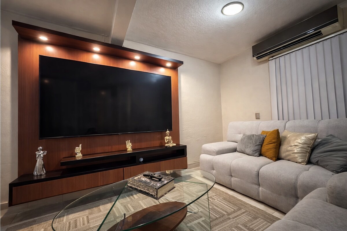 Casa completa de 3 recamaras muy buena ubicación, zona residencial-comercial, cuenta con 3 Habitaciones, 4 camas, p/ hasta 10 huéspedes, 2 baños completos y 2 medio baños, sala con TV Smart de 75 ", comedor para 6 pax, cocina con refrigerador, microonda, estufa y utensilios básicos de cocina; Encontraras un área de lavado con secadora incluida, incluye un GYM doméstico. En esta casa encontrarás un lugar completamente privado y a un precio accesible descubrir todas las maravillas de esta ciudad.