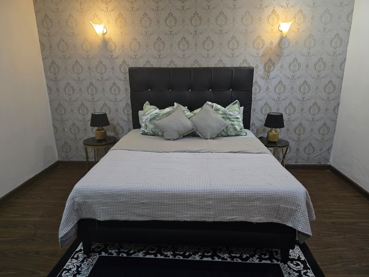 Disfruta de una experiencia inolvidable en un alojamiento céntrico. • Wifi ultrarrápido con LED de 55 pulgadas para una experiencia de Netflix eterna. • Sistema central de refrigeración y calefacción. • Cocina totalmente equipada con té de cortesía a la llegada. • Estacionamiento cerrado y vigilado con CCTV 24/7. • Terraza de hierba con sillas acogedoras para sesiones tranquilas. • A solo 5 minutos a pie del mercado DHA Phase 5 y de la tienda Imtiaz Super Store. • A solo 5 minutos en auto de Lahore Ring Road. • A solo 10 minutos en auto del aeropuerto de Lahore.