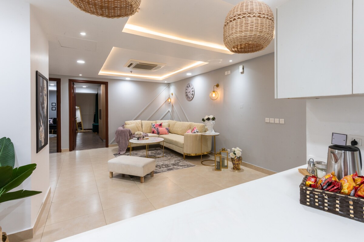 Nuestro departamento de un dormitorio combina modernidad, comodidad y lujo. Espacio habitable totalmente amueblado y bien iluminado con muebles contemporáneos, un dormitorio acogedor y una cocina moderna equipada con todo lo esencial. Sal a cafés, restaurantes y tiendas, todo a pocos pasos. ✅ Anfitrión: Superanfitrión de 5 estrellas Seguridad ✅ las 24 horas y vigilancia por circuito cerrado de televisión las 24 horas. ✅Estacionamiento gratuito ✅A 15 minutos del aeropuerto. Perfecto para viajeros de negocios, familias pequeñas o huéspedes solos que buscan una experiencia prémium en el corazón de DHA.