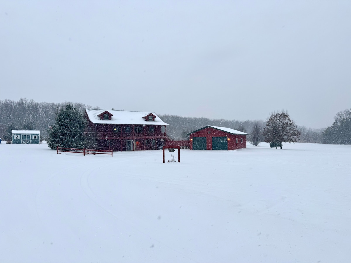 Relájate con familiares y amigos en paz en nuestra cabaña de troncos de concepto abierto construida a medida con un loft. Cuenta con 4 dormitorios privados con cama tamaño queen, un loft con literas, un sofá cama en la sala de estar y 2 baños completos. Disfruta de las 2 salas de estar y cocina en una cocina de concepto abierto que está totalmente equipada. Siéntate en uno de los 3 porches para disfrutar de una vista panorámica. Disfruta de herraduras y una fogata después de un largo día de actividades al aire libre: golf, pesca, paseos en barco, natación, todoterreno, senderismo, ciclismo, caza, tiro al plato y motos de nieve.