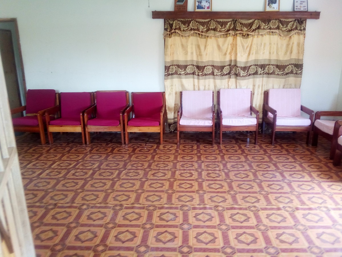 Un hogar lejos de casa, una casa que está amueblada, tiene 7 dormitorios , capacidad para 10-12 personas. tiene un asistente de tiempo completo para ayudarle con la casa, uno puede preparar sus propias comidas, instalaciones compartidas con nosotros como anfitriones cuando estamos en Kabale. calma con jardines abiertos para acampar si está interesado en montar su propia tienda de campaña. personas de todas las categorías son bienvenidas,