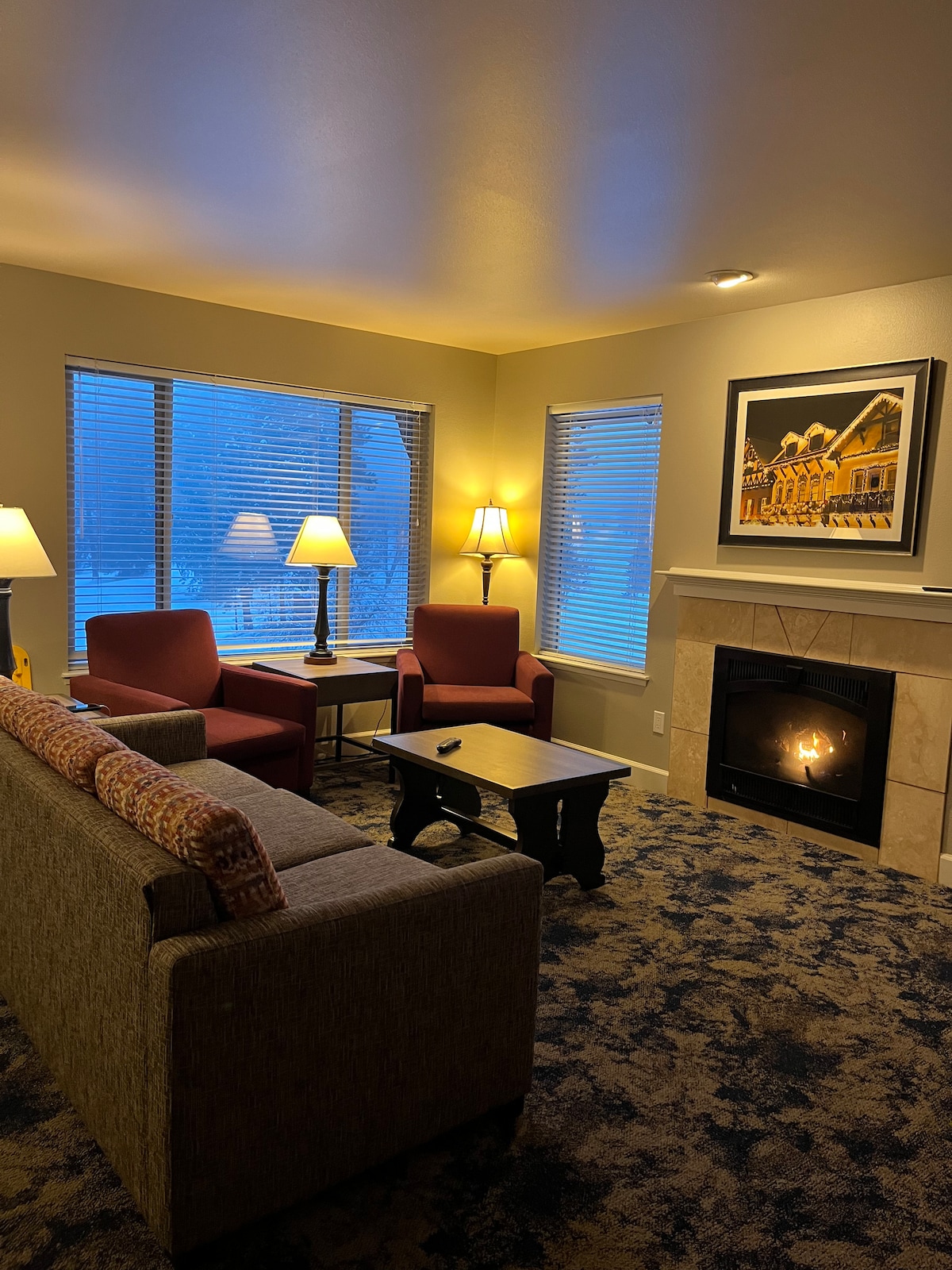 Contempla el centro de Leavenworth desde tu balcón privado Dream Suites 3 o 4. Cada apartamento es una suite de un dormitorio con cama tamaño king, sofá cama y cocina completa (sin horno). Relájate en la espaciosa sala de estar/comedor con chimenea eléctrica o sumérgete en la bañera de hidromasaje del baño (ducha separada). Este departamento tiene capacidad para cuatro personas. La tarifa se basa en ocupación doble, con un cargo adicional por huésped adicional de 12 años o más. Este departamento está en el tercer piso y solo es accesible por escaleras.