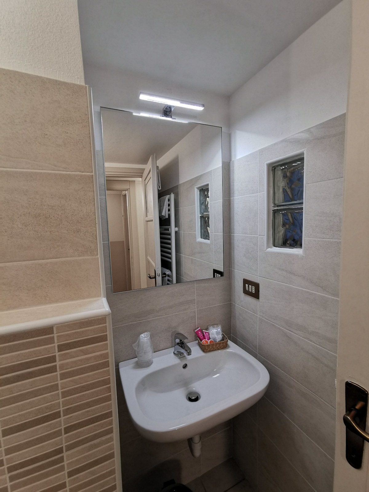 Stanza privata in appartamento condiviso (affittacamere / guest house) con bagno privato interno alla camera e cucina in comune. Possibilità di avere 2 letti singoli separati al posto del matrimoniale su richiesta. Bagno privato interno alla stanza.