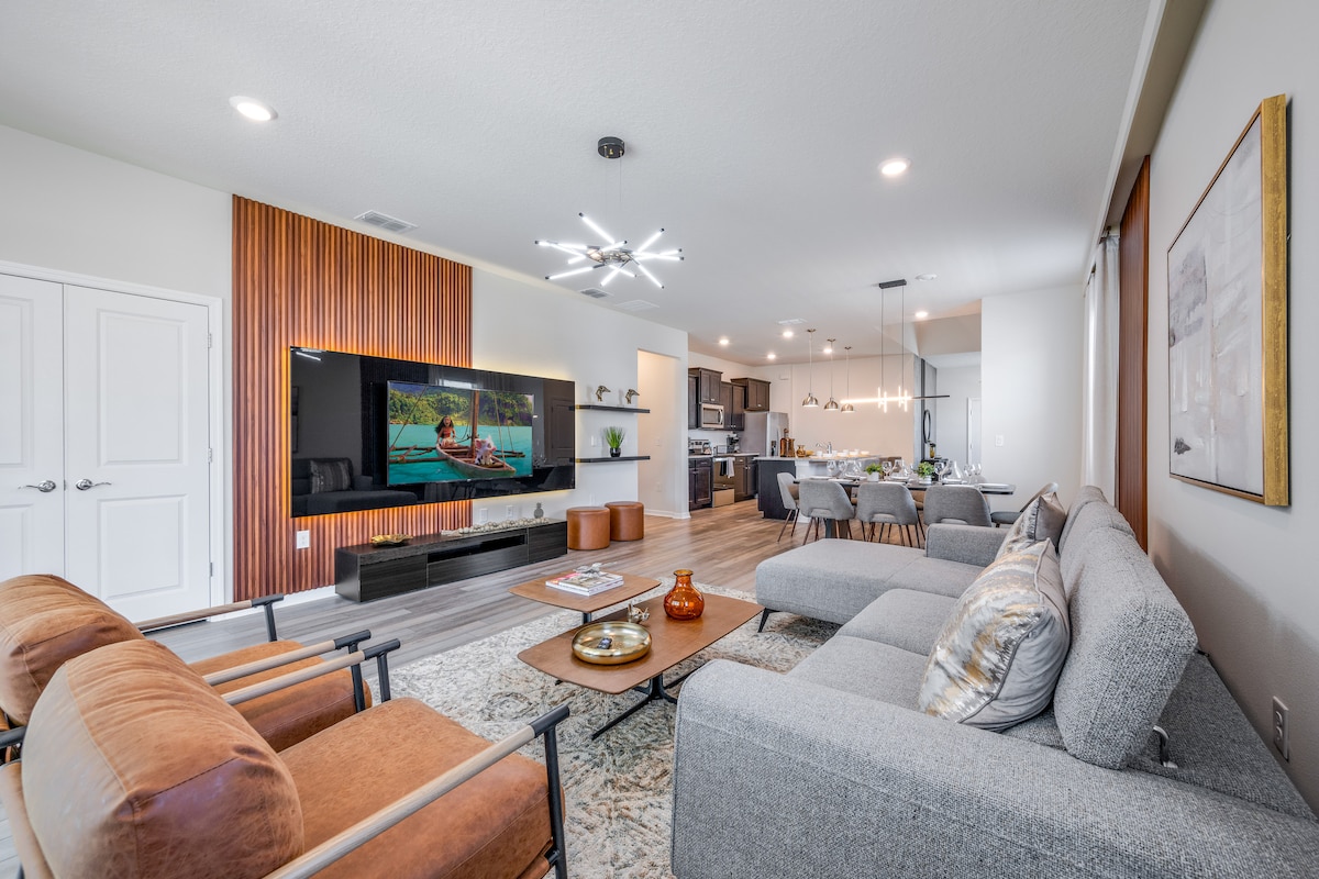 This home is peaceful, centrally located, family friendly and stylish! The home has a game room with activities for the whole family! Each room has built in charging stations and glow experiences. The private patio makes it fun and enjoyable. It sleeps up to 12 people comfortably. Located in the heart of Orlando where you can visit Disney, Universal Studios, Fun Spot, Sea World, Aquatica, Downtown and so much more. This area is tourist friendly and safe. The home is located in a subdivision.