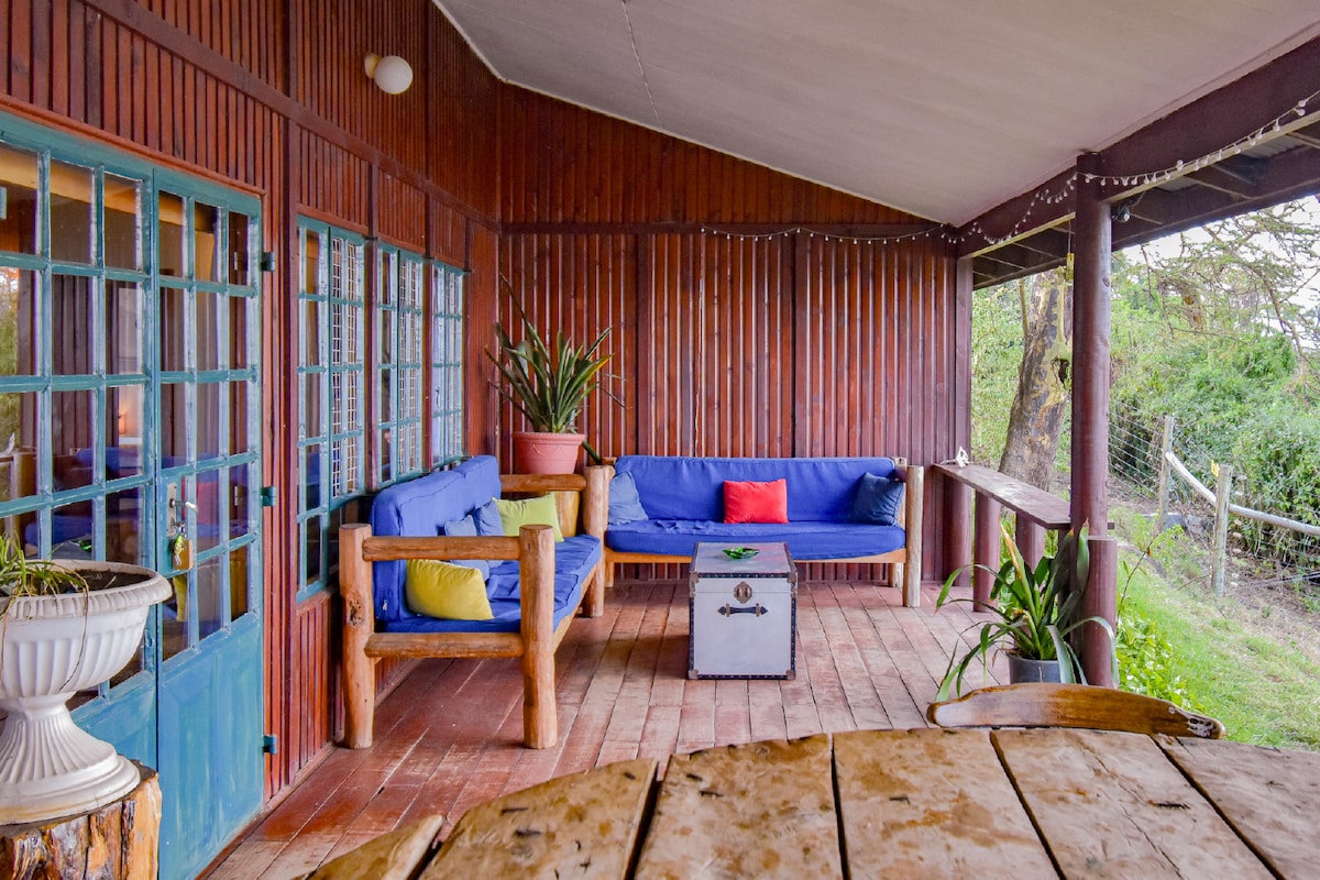 Escápate a nuestra acogedora casa de campo en el Gran Valle del Rift de Kenia, situada a 7000 pies en la finca Green Park. Disfruta de unas vistas impresionantes del monte Longonot desde el porche delantero o relájate frente a la chimenea en una de nuestras dos salas de estar. Nuestra granja de 50 acres ofrece el escenario perfecto para unas vacaciones independientes, con todas las comodidades y un personal atento para garantizar que tu estancia sea inolvidable. ¡Ven y disfruta del mejor refugio en el paraíso de la naturaleza!