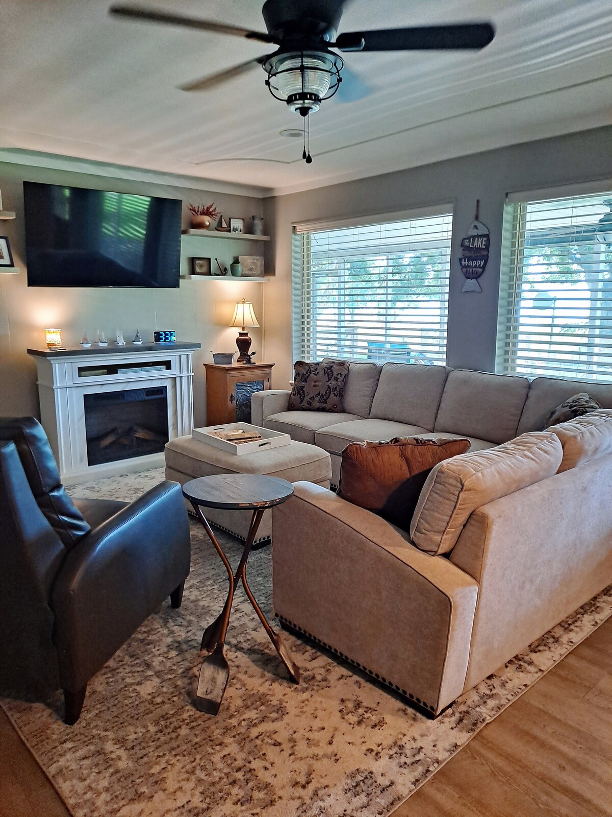***$ 120 por noche para las primeras 2 personas...cada huésped adicional $ 18pp por noche*** Este lugar es una joya oculta. A unos 100 metros del lago y la rampa del barco. Acceso al estanque privado en el propiedad. RV de 38 pies, enorme área de estacionamiento privado con capacidad para varios autos, camiones y barcos. El cable de extensión proporciona para cargar el barco. Se proporcionan juegos, refrigerios, agua, Keurig con cremas con sabor. Avísame que es una ocasión especial y decoraré la autocaravana. ¡Nos encantaría hospedarte, así que ven a alojarte con nosotros!