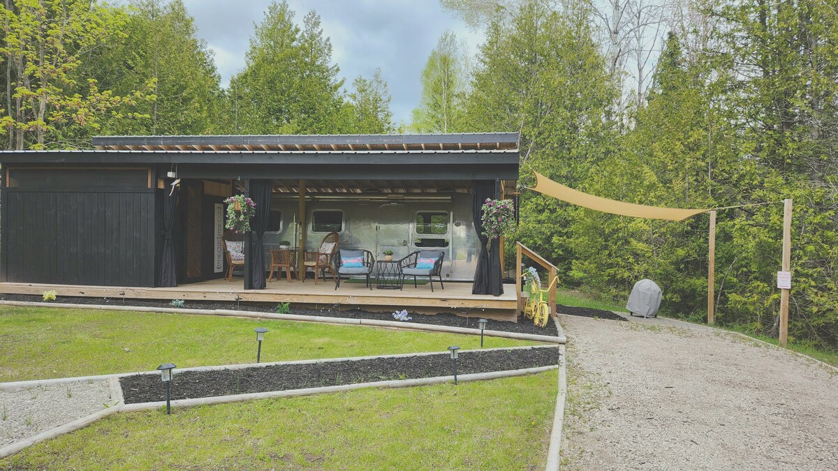 Enjoy an Urban Glamping experience like no other in the heart of Paris while staying in your very own, completely restored Airstream Argosy. Just minutes away from beautiful downtown Paris. Wake up and enjoy treats from the famous "Little Paris Bread Co." or enjoy a funky take-out meal at the "Secret Lunch"... both on premises. You'll be hidden away in the back far from prying eyes while you sit outside and enjoy the vibe as you prepare to cycle the Grand River trail or Canoe the Grand.
