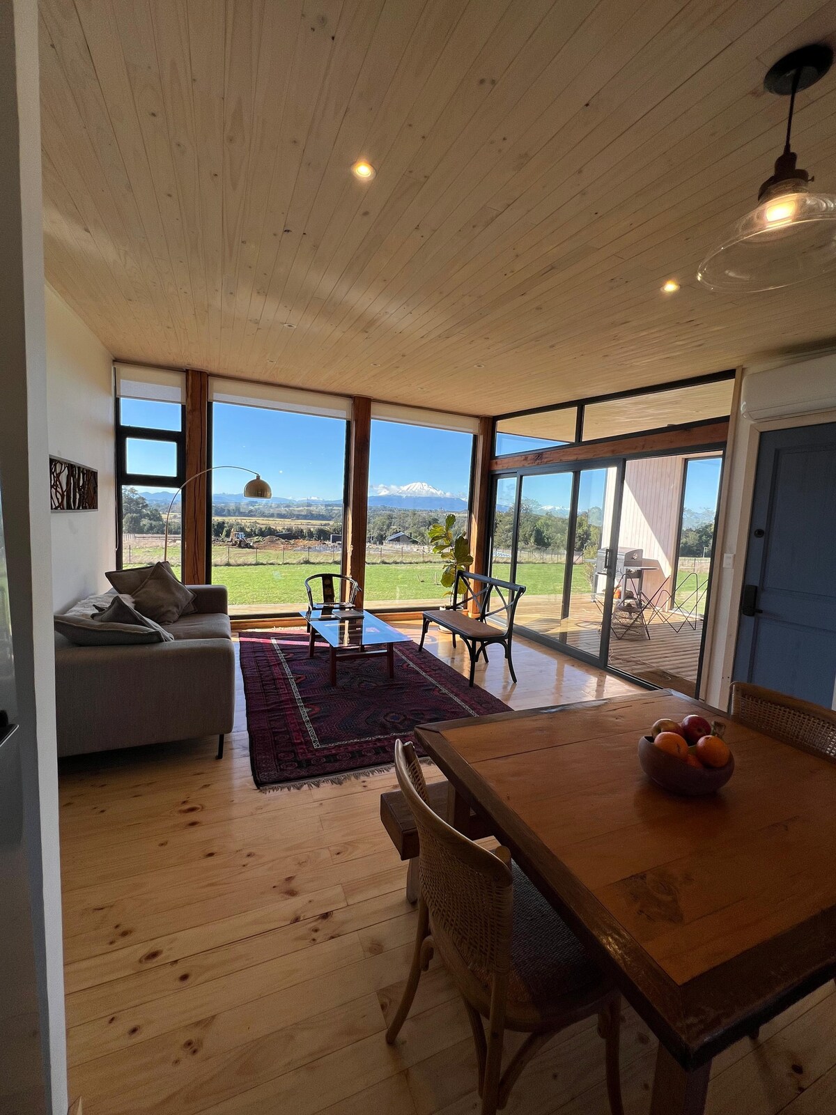 Esta hermosa Tiny House se encuentra en un sector privilegiado de Frutillar, con vistas espectaculares al lago Llanquihue y los Volcanes. La estrella del lugar es el ✨ Jacuzzi ✨: ubicado en la terraza y con las mejores vistas que se pueden tener, es el final perfecto para un día de paseo por esta hermosa zona. Está equipada con todo lo que necesitan para una estadía confortable y relajante. Cuenta con una cama King, cafetera Nespresso, una parrilla a carbón, un televisor con Direct TV y WiFi.