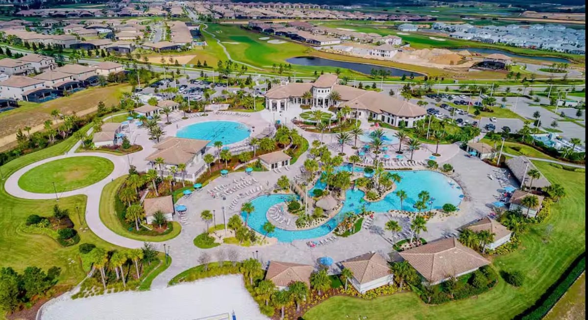 Casa de dos pisos con piscina, patio, barbacoa y sala de juegos. Rodeada de parques, jardines, lagos y senderos para caminar con vistas impresionantes. Las comodidades del resort están ubicadas justo al frente, incluyendo clubhouse (propiedad privada), restaurante Bar & Grill, parque acuático (costo adicional), arcade, gimnasio, cancha de voleibol, campos de fútbol y centro de eventos. (Hogar sin mascotas) 12 mi Legoland / 19 mi Disney / 26 mi SeaWorld & International Drive / 29 mi Universal.