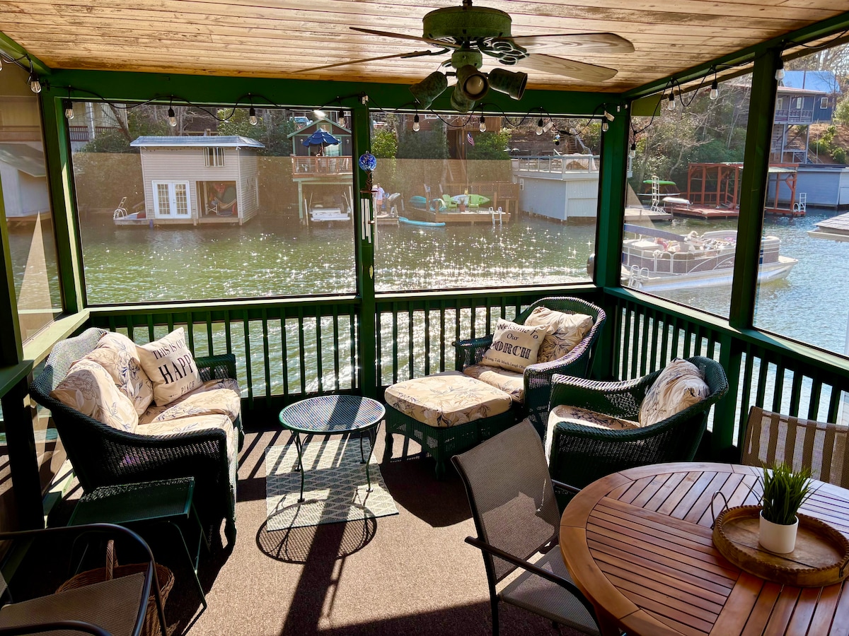 Casa de canoa roja en Riverbend en Lake Lure