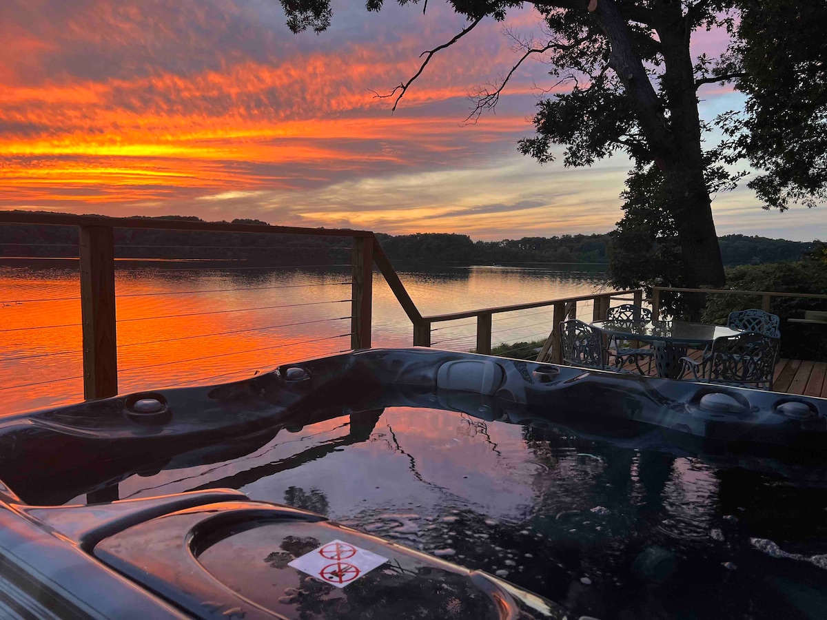 Retiro tranquilo junto al lago con vistas espectaculares al atardecer