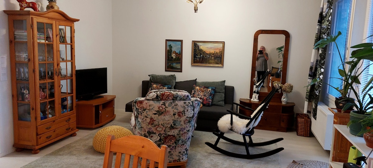 ¡Este espacioso apartamento de un dormitorio (51,5 m2) es ideal tanto para personas que viajan solas como para grupos más grandes! El apartamento está a poca distancia del Centro de Viajes (450 m), de los servicios del centro (450 m) y del centro de exposiciones (Pabellón, 800 m). También puede disfrutar de la proximidad a la naturaleza en la orilla del río Tourujoki, que está a solo 150 m. El centro comercial Sepän también está a solo 7 minutos en coche. El apartamento incluye una plaza de aparcamiento privada con toma de corriente para el coche. Además, se puede aparcar en la calle los días laborables con un disco de aparcamiento de 2 horas de 8:00 a 18:00 y el resto del tiempo de forma gratuita.