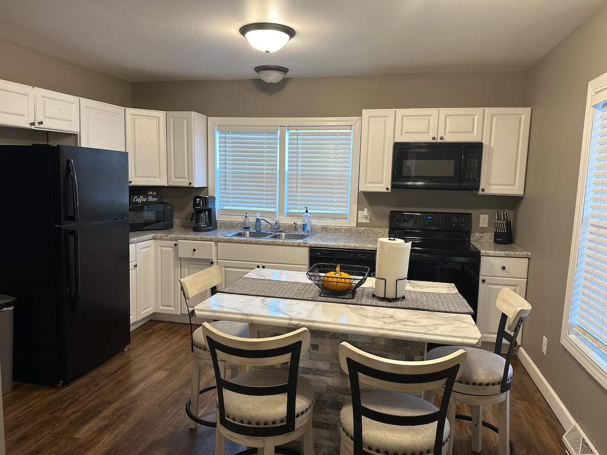 Esta es una casa entera en un vecindario agradable/tranquilo, 4 dormitorios, 2 baños, está perfectamente configurada para estancias cortas y largas. Está ubicado en medio de la ciudad, cerca de Oak Park, ubicado a 5 minutos del Hospital Trinity y a 8 minutos del aeropuerto. La casa tiene entrada y estacionamiento en la calle, bañera de hidromasaje/juego de patio, lavadora/secadora, nevera, estufa y lavavajillas. También hay espacio en el patio trasero para estacionar una caravana o un remolque si es necesario.