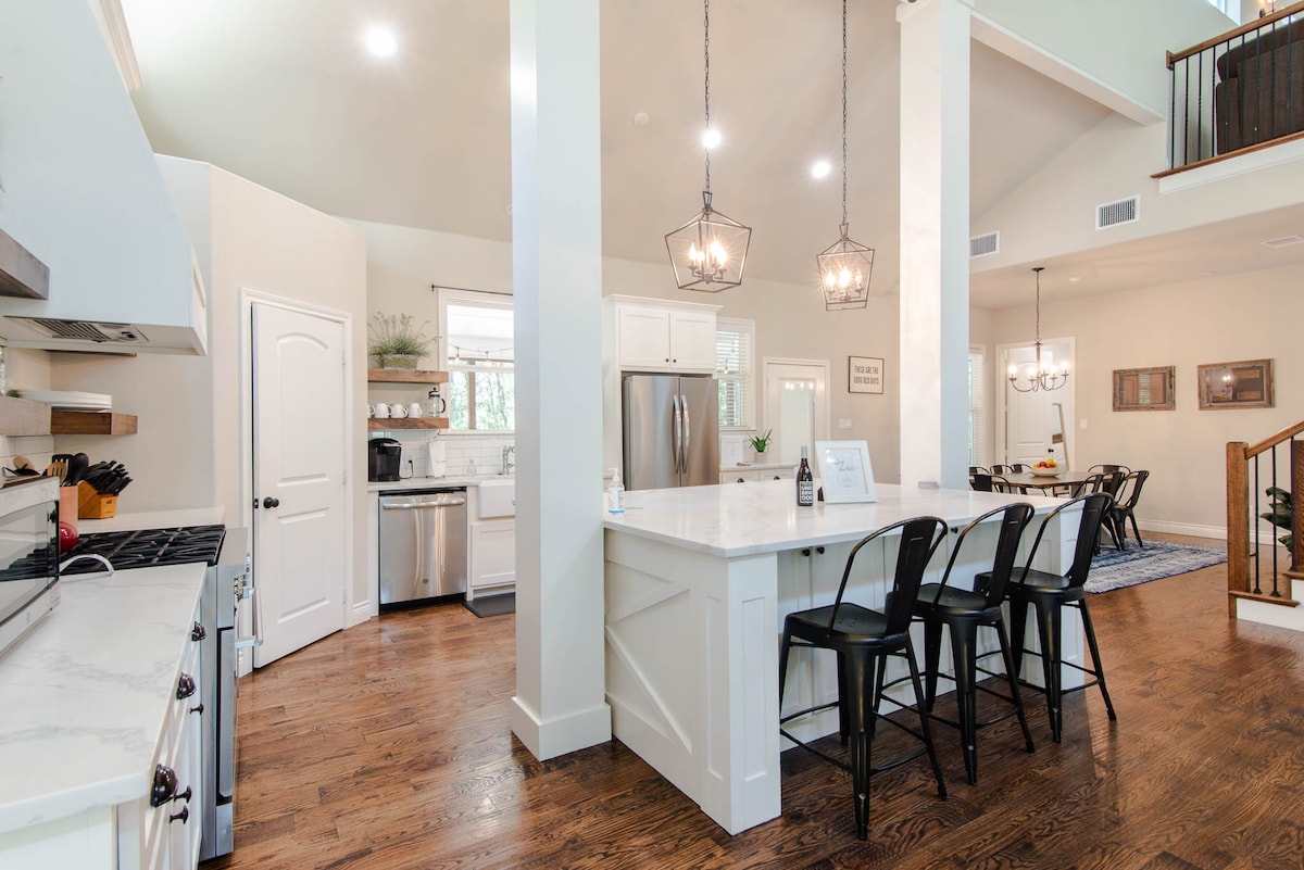 ¡El lago Tawakoni te espera! Reclama tu asiento en primera fila en Bluewater Bungalow, una casa de alquiler vacacional frente al lago con un distintivo diseño de «granja bohemia» que estaría en casa en la revista Southern Living. Aspectos destacados: remodelado en 2018 con techos abovedados y cocina personalizada, vistas al lago en abundancia, cientos de pies de costa privada, patio trasero grande y privado (¡incluye tu propio muelle de pesca!), chimenea para s'mores y una sala de estar/comedor al aire libre cubierta para barbacoas y puestas de sol espectaculares.