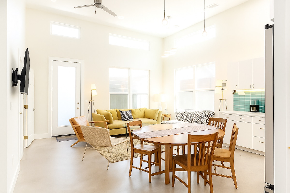 Relax in this beautiful newly built architect designed space--comfortable and built for bachelor/ette or family groups having the most fun relaxing Austin visit imaginable. Spacious, with totally private outdoor space, you will not want to leave Austin or this house. Close walking distance to tons of cool restaurants, bars, a destination bakery, cafes, the best access to the lake and trail in the city, closest residential area to 6th, downtown, Rainey etc. Truly PERFECT house in BEST location.