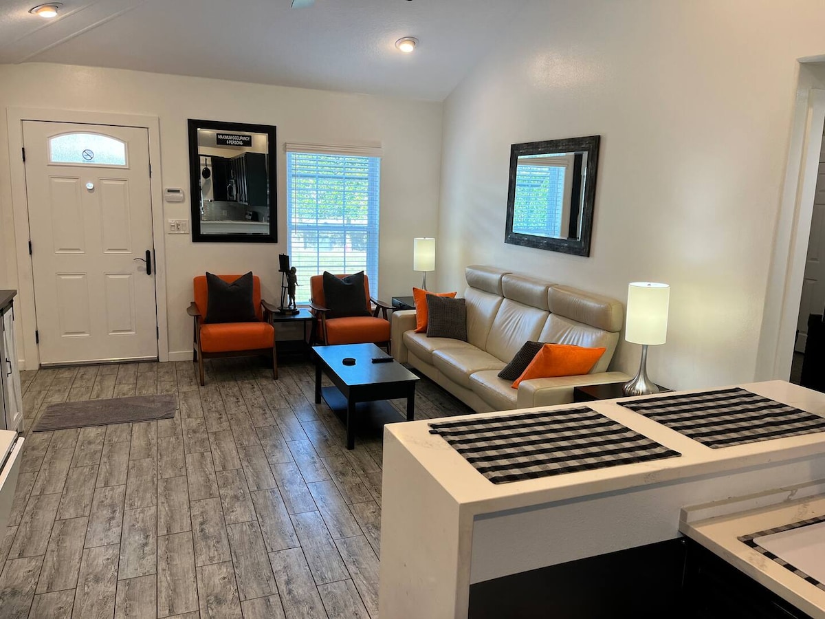 Estarás cerca de todo cuando te hospedes en este bungalow céntrico. Situado justo al lado de la I-4, a 5 minutos del Advent Health Hospital, estarás a 5 minutos del centro de Orlando, a 10 minutos del centro de Winter Park, a 15 minutos de Universal Studios y a 25 minutos de Disney. ¡Campo de golf Dubsdread a poca distancia a pie! Televisor 4K grande de 70 pulgadas con sonido envolvente, sofá grande para disfrutar viendo tus películas favoritas, 2 habitaciones con camas tamaño queen y 2 baños equipados con música bluetooth.