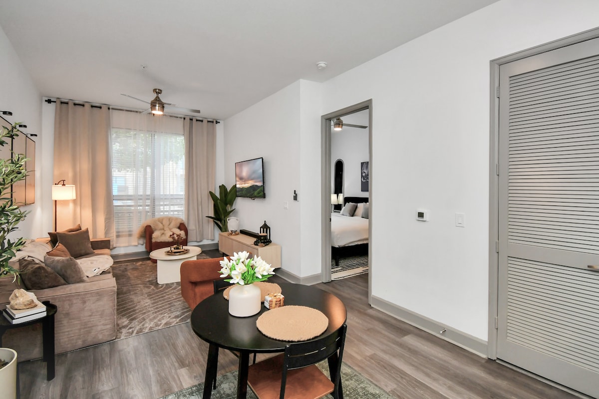 Luxury 1BR apartment in a high-end community with fantastic amenities: pool, gym, fireplace courtyards, and parking garage. Includes WiFi, two TVs, coffee, full washer/dryer, and modern bath with tub. King bed for comfort. Walking distance to Whole Foods and shops. 8 minutes to Rice Village, 12 to the Medical Center, 15 to the Galleria, River Oaks, and Montrose. Perfect for a convenient, upscale stay!