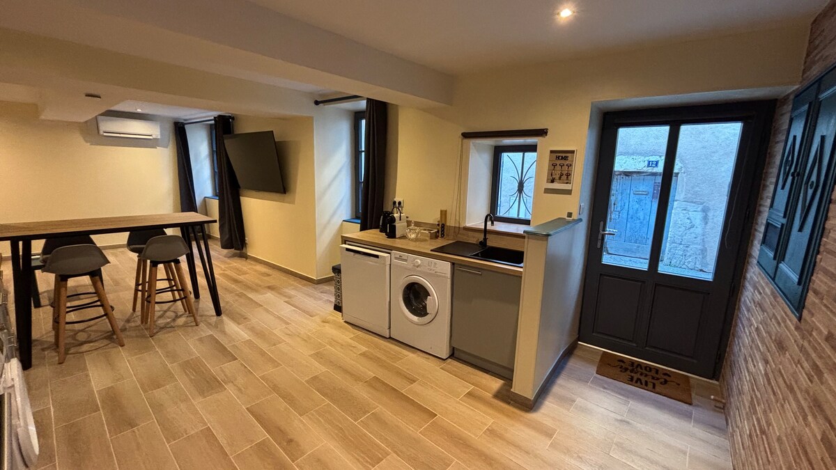 Este alojamiento único, situado en el corazón del centro histórico de Chalon sur Saône, le seducirá por su encanto francés con sus piedras y marcos expuestos y todas sus características. Cocina equipada con bodega, salón con sofá, wifi y Netflix. Cuarto de baño con ducha y bañera. Dormitorio en altillo con cama de matrimonio, equipado con vestidor y cajón de almacenamiento. Este loft seducirá por su diseño único y le hará pasar una estancia inolvidable.
